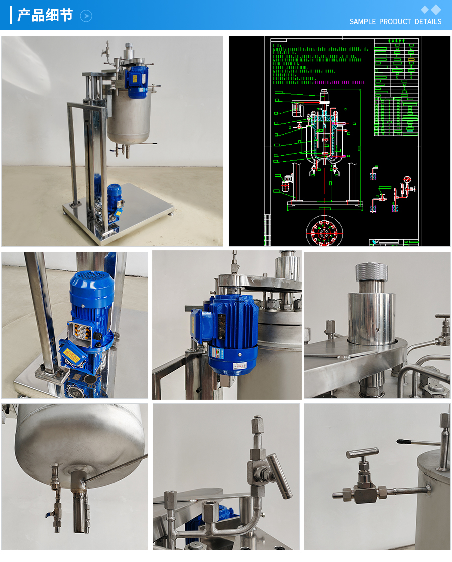 其他附件 如果用户在釜盖、釜体开口、内部结构、压力高低、搅拌桨叶、及增加其他辅助装置(如冷凝回流装置、冷凝器、恒压加料罐、接收装置)等有特殊要求,可完全按用户的要求加工制造