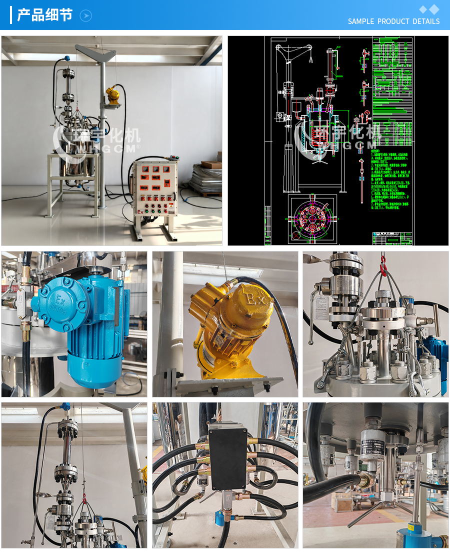 其他附件 如果用户在釜盖、釜体开口、内部结构、压力高低、搅拌桨叶、及增加其他辅助装置(如冷凝回流装置、冷凝器、恒压加料罐、接收装置)等有特殊要求,可完全按用户的要求加工制造